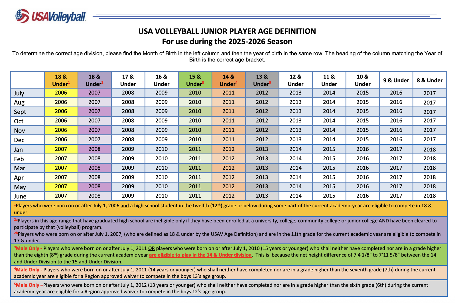 You can find your athlete's age category on the 2026 Age Definition Chart.